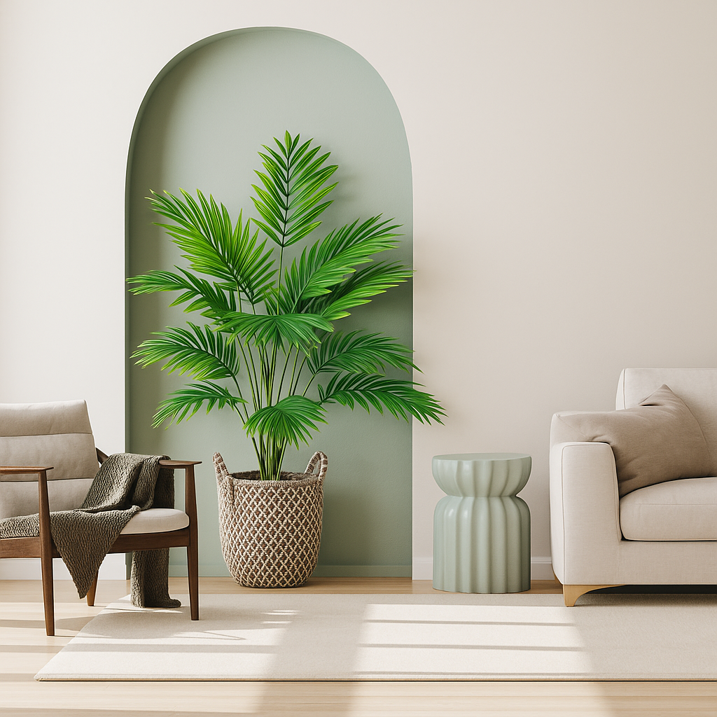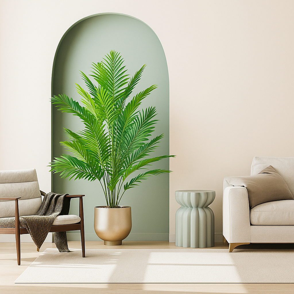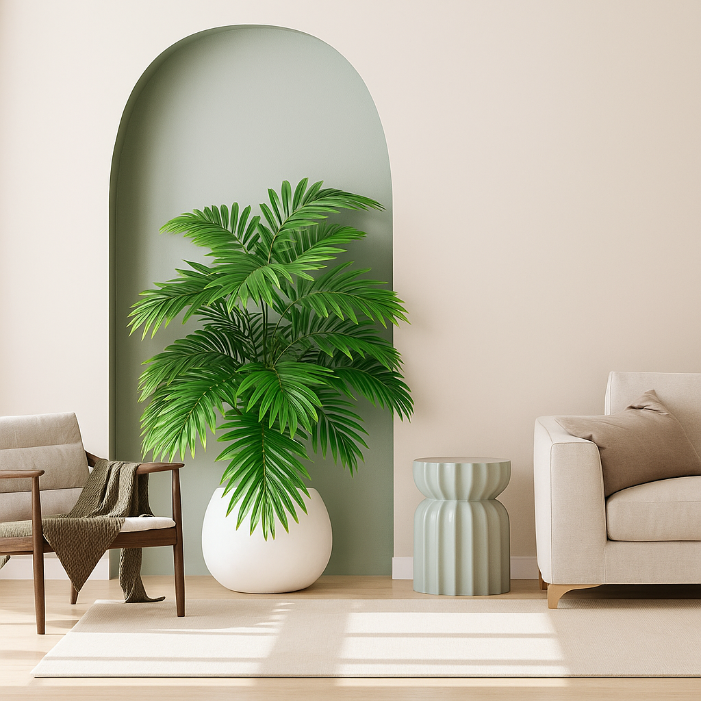 Palmeira Tropical - Inspirada nas palmeiras tropicais do sudeste asiático, esta planta é conhecida pelas suas folhas longas, arqueadas e profundamente recortadas, que criam uma silhueta exótica e elegante. Muito usada em decorações tropicais, modernas ou boho, a sua presença transmite calma, sofisticação e conexão com a natureza.